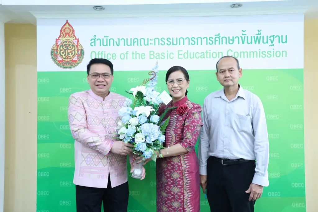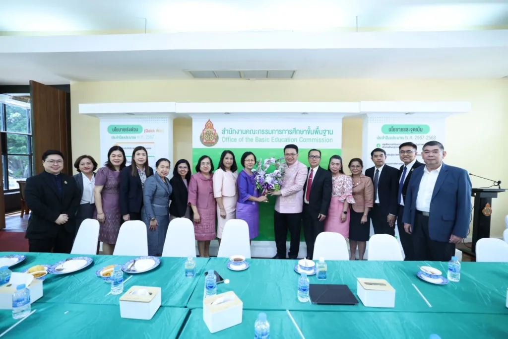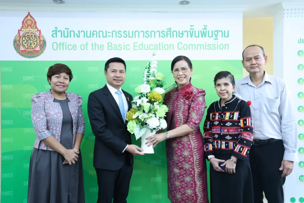 วันที่ 7 ตุลาคม 2568 นางนัยนา ตันเจริญ ผู้อำนวยการสำนักอำนวยการ สำนักงานคณะกรรมการการศึกษาขั้นพื้นฐาน (สพฐ.) พร้อมด้วยข้าราชการ พนักงานราชการ และเจ้าหน้าที่ในสังกัดสำนักอำนวยการ เข้าร่วมแสดงความยินดีในโอกาสที่ผู้บริหารระดับสูงของกระทรวงศึกษาธิการเข้ารับตำแหน่งใหม่ ได้แก่ นายพิเชฐ โพธิ์ภักดี เลขาธิการคณะกรรมการการศึกษาขั้นพื้นฐาน (เลขาธิการ กพฐ.) นายพิเชฐร์ วันทอง รองเลขาธิการ กพฐ. นายสุรศักดิ์ อินศรีไกร รองปลัดกระทรวงศึกษาธิการ นายนิยม ไผ่โสภา ผู้ตรวจราชการกระทรวงศึกษาธิการ และ นายเสริมฤทธิ์ หวายฤทธิ์ธนกุล ผู้ตรวจราชการกระทรวงศึกษาธิการ