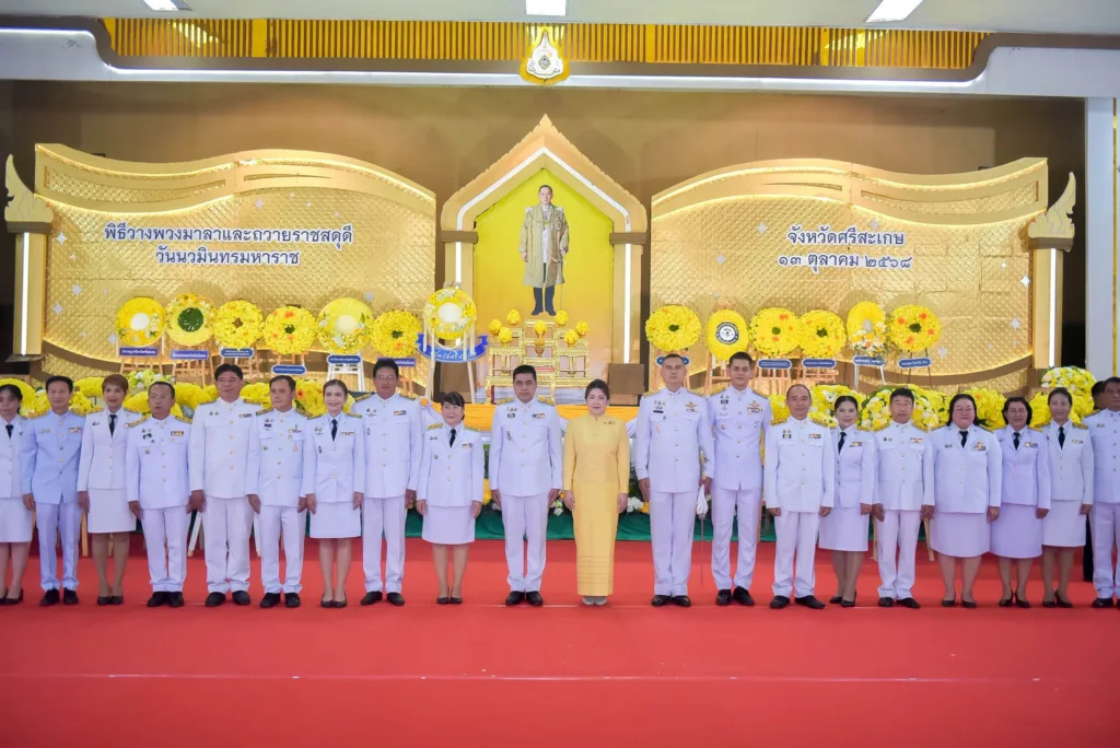 เมื่อวันที่ 13 ตุลาคม 2568 เวลา 09.00 น. ณ อาคารเฉลิมพระเกียรติฉลองสิริราชสมบัติ ครบ 60 ปี อำเภอเมือง จังหวัดศรีสะเกษ นางสาวธรรศญา หล่าอุดม รองผู้อำนวยการสำนักงานเขตพื้นที่การศึกษาประถมศึกษาศรีสะเกษ เขต 1 พร้อมด้วย นางสาวอมรรัตน์ แก้วสิงห์ ปฏิบัติหน้าที่ผู้อำนวยการกลุ่มส่งเสริมการศึกษาทางไกล เทคโนโลยีสารสนเทศและการสื่อสาร และบุคลากรหน่วยตรวจสอบภายใน เข้าร่วมพิธีวางพวงมาลาและถวายราชสดุดี เนื่องในวันนวมินทรมหาราช เพื่อน้อมรำลึกถึงพระมหากรุณาธิคุณในพระบาทสมเด็จพระบรมชนกาธิเบศร มหาภูมิพลอดุลยเดชมหาราช บรมนาถบพิตร โดยมี นายอนุพงศ์ สุขสมนิตย์ ผู้ว่าราชการจังหวัดศรีสะเกษ เป็นประธานในพิธี/////// ปาริชาติ อาจสำแดง – อมรรัตน์ แก้วสิงห์ ภาพ / ข่าว