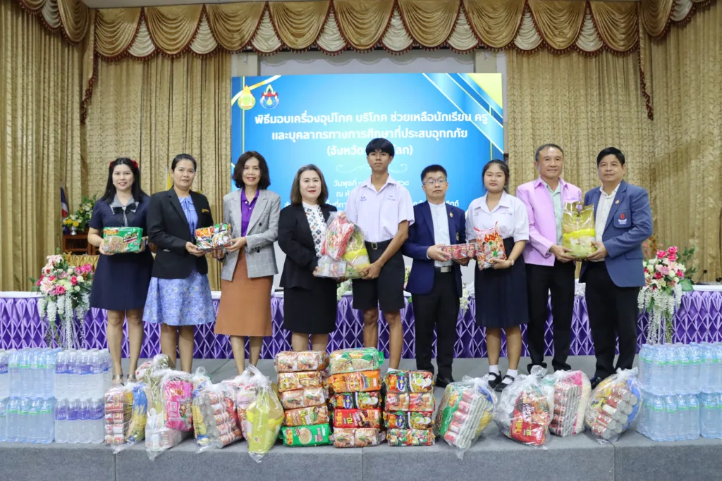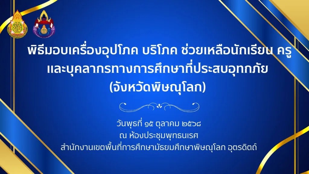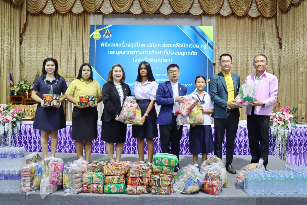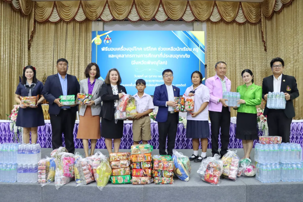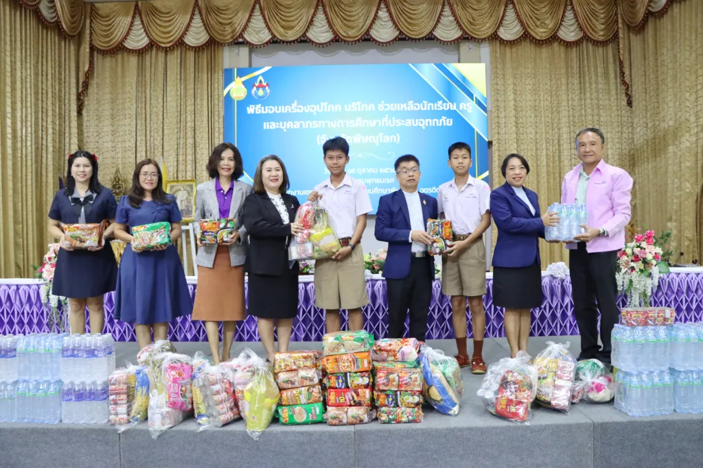 วันพุธที่ 15 ตุลาคม 2568 เวลา 10.30 น. ดร.ศิริวรรณ ขวัญมุข ผู้อำนวยการสำนักงานเขตพื้นที่การศึกษามัธยมศึกษาพิษณุโลก อุตรดิตถ์ มอบหมายให้ ดร.จิรวรรณ สุรเสียง นายพร ดังดี รองผู้อำนวยการสำนักงานเขตพื้นที่การศึกษามัธยมศึกษาพิษณุโลก อุตรดิตถ์ พร้อมด้วย ผู้อำนวยการกลุ่มทุกกลุ่มงาน ร่วมมอบเครื่องอุปโภคบริโภคให้กับตัวแทนนักเรียน ครู บุคลากรทางการศึกษาที่ประสบอุทกภัยในพื้นที่ จำนวน 12 โรงเรียน ได้แก่ โรงเรียนบางระกำวิทยศึกษา โรงเรียนสฤษดิ์เสนาพิทยาคม โรงเรียนเนินสะอาดวิทยาคม โรงเรียนหนองพระพิทยา โรงเรียนวังทองพิทยาคม โรงเรียนเนินมะปรางศึกษาวิทยา โรงเรียนจ่านกร้อง โรงเรียนเนินกุ่มวิทยา โรงเรียนชาติตระการวิทยา โรงเรียนบางกระทุ่มพิทยาคม โรงเรียนคันโช้งพิทยาคม และโรงเรียนสวนเมี่ยงวิทยา เพื่อเป็นการบรรเทาความเดือดร้อน สร้างขวัญกำลังใจ แก่นักเรียน ครู และบุคลากรทางการศึกษา ณ ห้องประชุมพุทธนเรศ สำนักงานเขตพื้นที่การศึกษามัธยมศึกษาพิษณุโลก อุตรดิตถ์