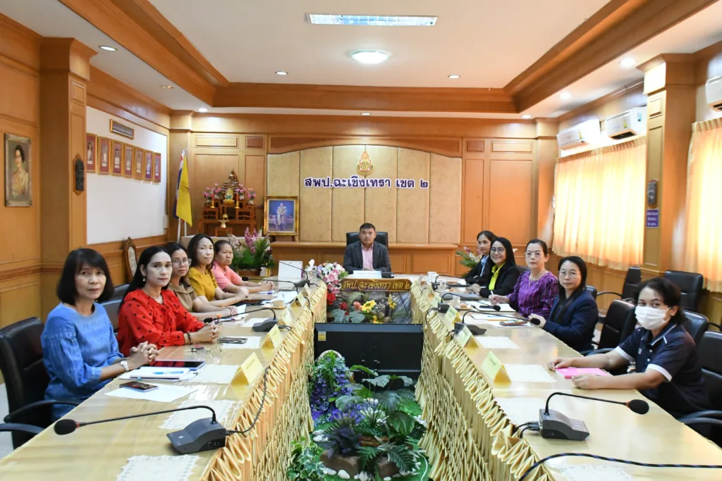 วันที่ 16 ตุลาคม 2568 เวลา 08.30 น. นายนิติศาสตร์ พรมแสงใส ผู้อำนวยการสำนักงานเขตพื้นที่การศึกษาประถมศึกษาฉะเชิงเทรา เขต 2 มอบหมายให้ นายพิพัฒน์ พัฒนะพุฒิเลิศ รองผู้อำนวยการสำนักงานเขตพื้นที่การศึกษาประถมศึกษาฉะเชิงเทรา เขต 2 พร้อมด้วย นางเกษร สมาทอง รองผู้อำนวยการสำนักงานเขตพื้นที่การศึกษาประถมศึกษาฉะเชิงเทรา เขต 2 และผู้อำนวยการกลุ่ม/หน่วย ร่วมรับชมรายการ พฤหัสเช้า ข่าว สพฐ. ครั้งที่ 41/2568 ผ่านระบบ VDO Conference โดยรับชมรายการ ณ ห้องประชุมพุทธโสธร สำนักงานเขตพื้นที่การศึกษาประถมศึกษาฉะเชิงเทรา เขต 2 และได้ประชาสัมพันธ์ ให้โรงเรียนในสังกัด ติดตามรับชมผ่านช่องทางต่าง ๆ ดังนี้