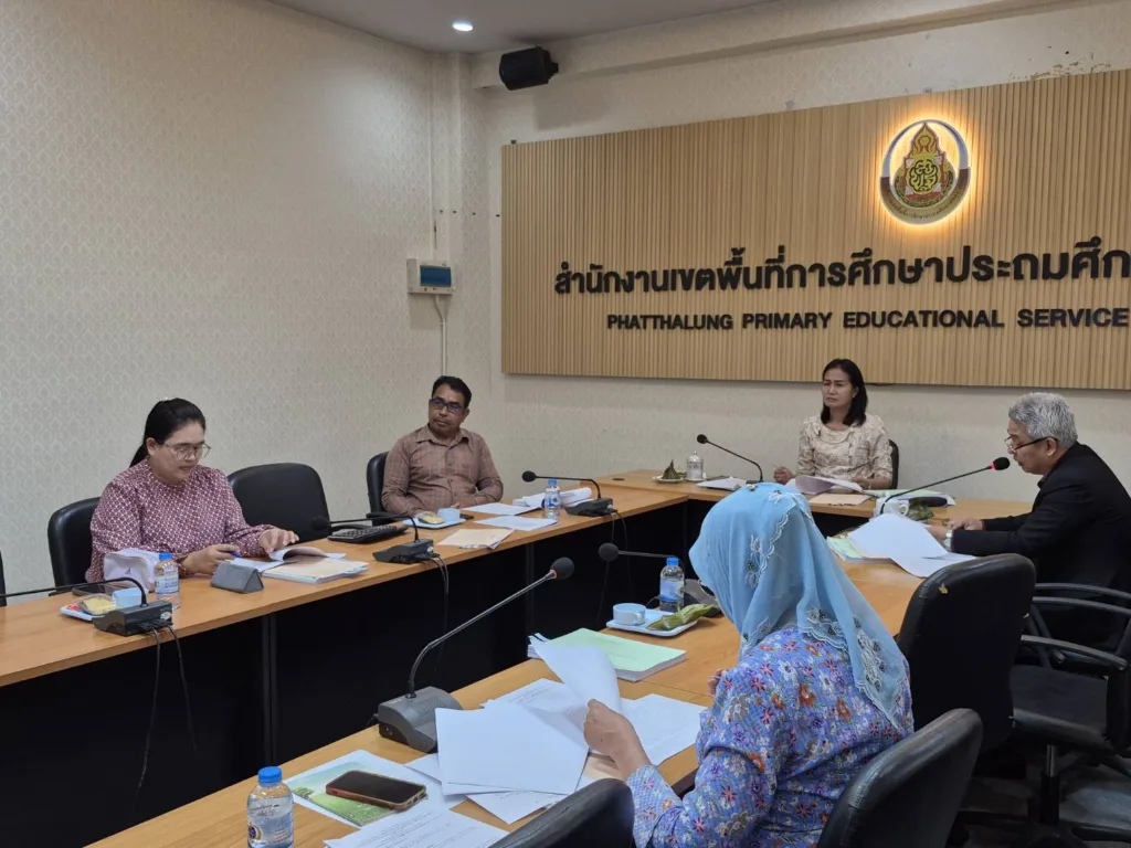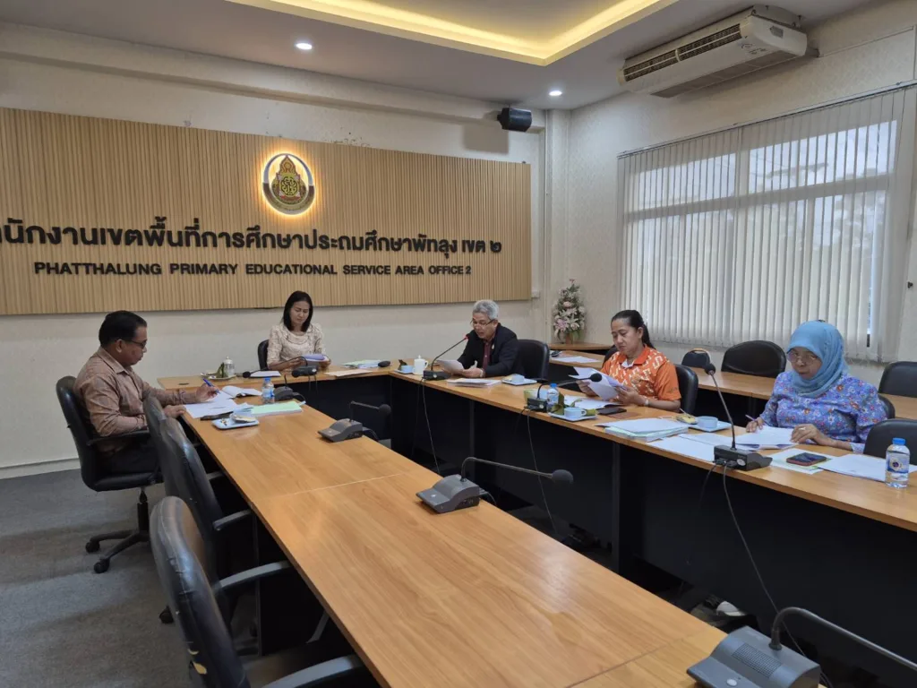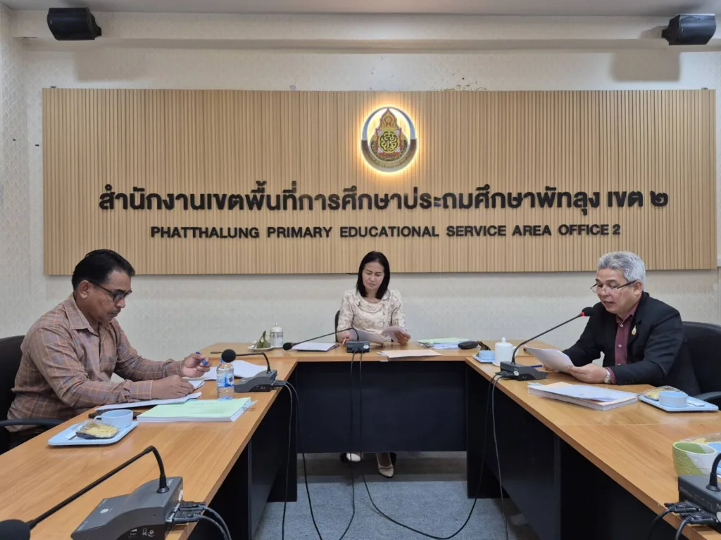 วันที่ 16 ตุลาคม 2568 ดร.วรนิษฐา คำยศ ผู้อำนวยการสำนักงานเขตพื้นที่การศึกษาประถมศึกษาพัทลุง เขต 2 เป็นประธานการประชุมคณะกรรมการพิจารณาเลื่อนเงินเดือนข้าราชการระดับเขตพื้นที่การศึกษา และคณะกรรมการกลั่นกรองการเลื่อนเงินเดือนข้าราชการครูและบุคลากรทางการศึกษา ตำแหน่ง บุคลากรทางการศึกษาอื่น 38 ค. (2) ณ ห้องประชุมไพรวัลย์ธารา สพป.พัทลุง เขต 2