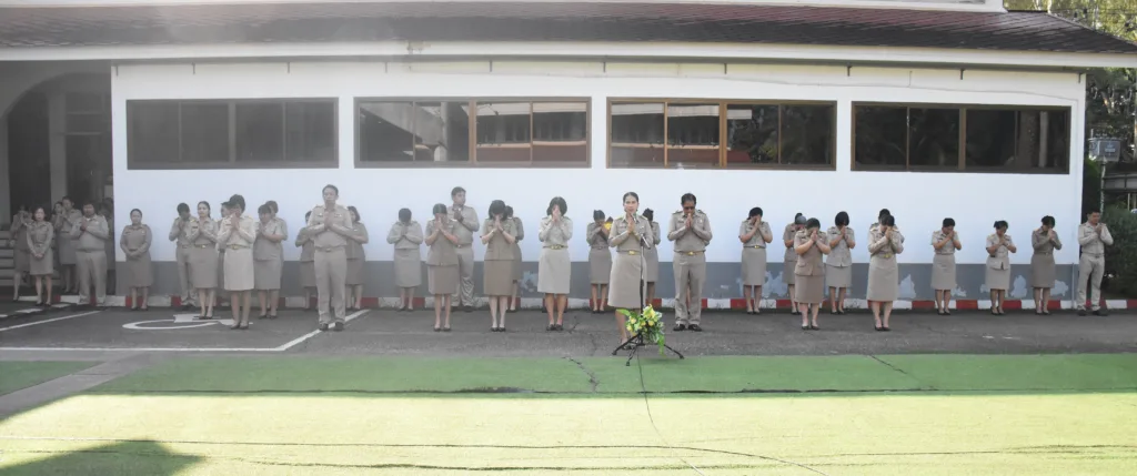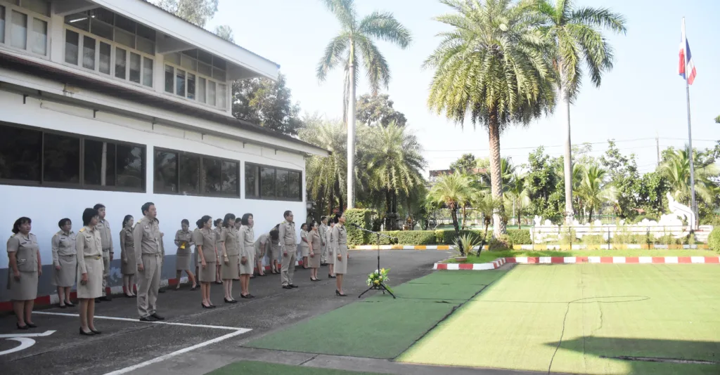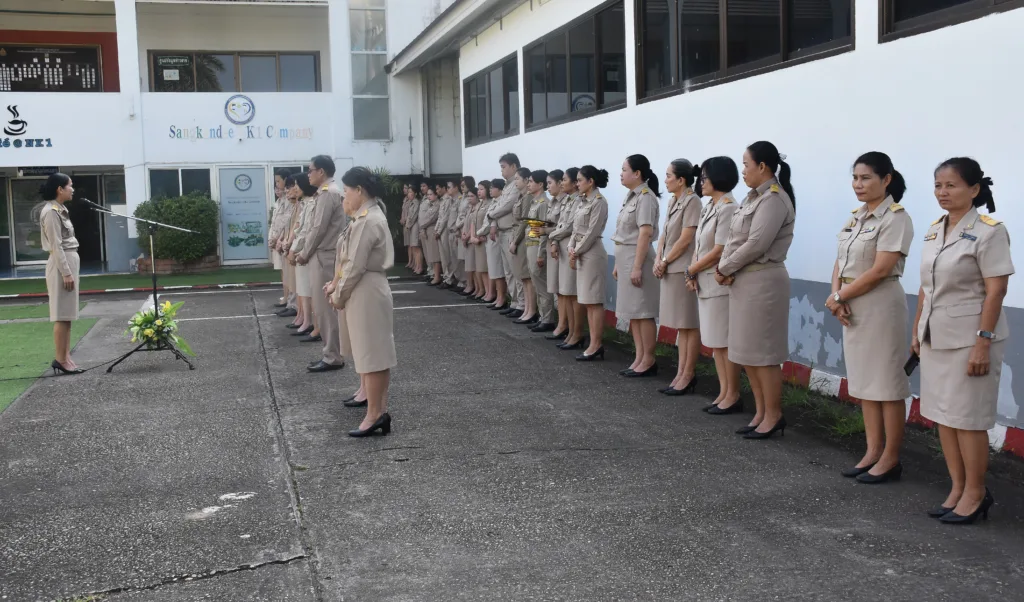 วันจันทร์ที่ 20 ตุลาคม พ.ศ.2568 เวลา 08.30 น. นางสาวรุ่งนภา ธิศรี ผู้อำนวยการสำนักงานเขตพื้นที่การศึกษาประถมศึกษาหนองคาย เขต 1 นำรองผู้อำนวยการสำนักงานเขตพื้นที่การศึกษาประถมศึกษาหนองคาย เขต 1 และบุคคลากรในสังกัด ดำเนินกิจกรรมเคารพธงชาติ สวดมนต์ไหว้พระ กล่าวคำปฏิญญาเขตสุจริต ร่วมร้องเพลง “จำขึ้นใจ” บทเพลงแห่งการเป็นข้าราชการที่ดีของแผ่นดิน เพื่อการขับเคลื่อนโครงการเสริมสร้างคุณธรรม จริยธรรมและธรรมาภิบาลในเขตพื้นที่การศึกษา ปลูกฝังความรักชาติ ศาสน์ กษัตริย์ แจ้งข้อราชการและแนวปฏิบัติในการปฏิบัติราชการ จากสำนักงานคณะกรรมการการศึกษาขั้นพื้นฐาน ณ บริเวณด้านหน้าอาคารสำนักงานเขตพื้นที่การศึกษาประถมศึกษาหนองคาย เขต 1