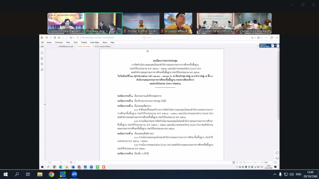 วันจันทร์ที่ 20 ตุลาคม 2568 เวลา 13.30 น. ดร.ศิริวรรณ ขวัญมุข ผู้อำนวยการสำนักงานเขตพื้นที่การศึกษามัธยมศึกษาพิษณุโลก อุตรดิตถ์ ในนามผู้อำนวยการเขตตรวจราชการ สำนักงานคณะกรรมการการศึกษาขั้นพื้นฐาน เขตตรวจราชการที่ 17 (พิษณุโลก ตาก สุโขทัย อุตรดิตถ์ เพชรบูรณ์) เข้าร่วมประชุมการจัดทำนโยบายและจุดเน้นของสำนักงานคณะกรรมการการศึกษาขั้นพื้นฐาน ประจำปีงบประมาณ พ.ศ. 2569 – 2570 และนโยบายระยะเร่งด่วน (Quick Win) ของสำนักงานคณะกรรมการการศึกษาขั้นพื้นฐาน ประจำปีงบประมาณ พ.ศ. 2569 ในรูปแบบออนไลน์ผ่านระบบ Zoom Meeting เพื่อให้การจัดการศึกษาขั้นพื้นฐาน เป็นไปตามพระบรมราโชบายด้านการศึกษา นโยบายของรัฐบาล และนโยบายของกระทรวงศึกษาธิการ รวมทั้งสามารถนำไปจัดทำแผนปฏิบัติราชการประจำปีงบประมาณ พ.ศ. 2569 และใช้ในการจัดทำคำขอตั้งงบประมาณรายจ่ายประจำปีงบประมาณ พ.ศ. 2570 ณ ห้องประชุม PLC Center สำนักงานเขตพื้นที่การศึกษามัธยมศึกษาพิษณุโลก อุตรดิตถ์