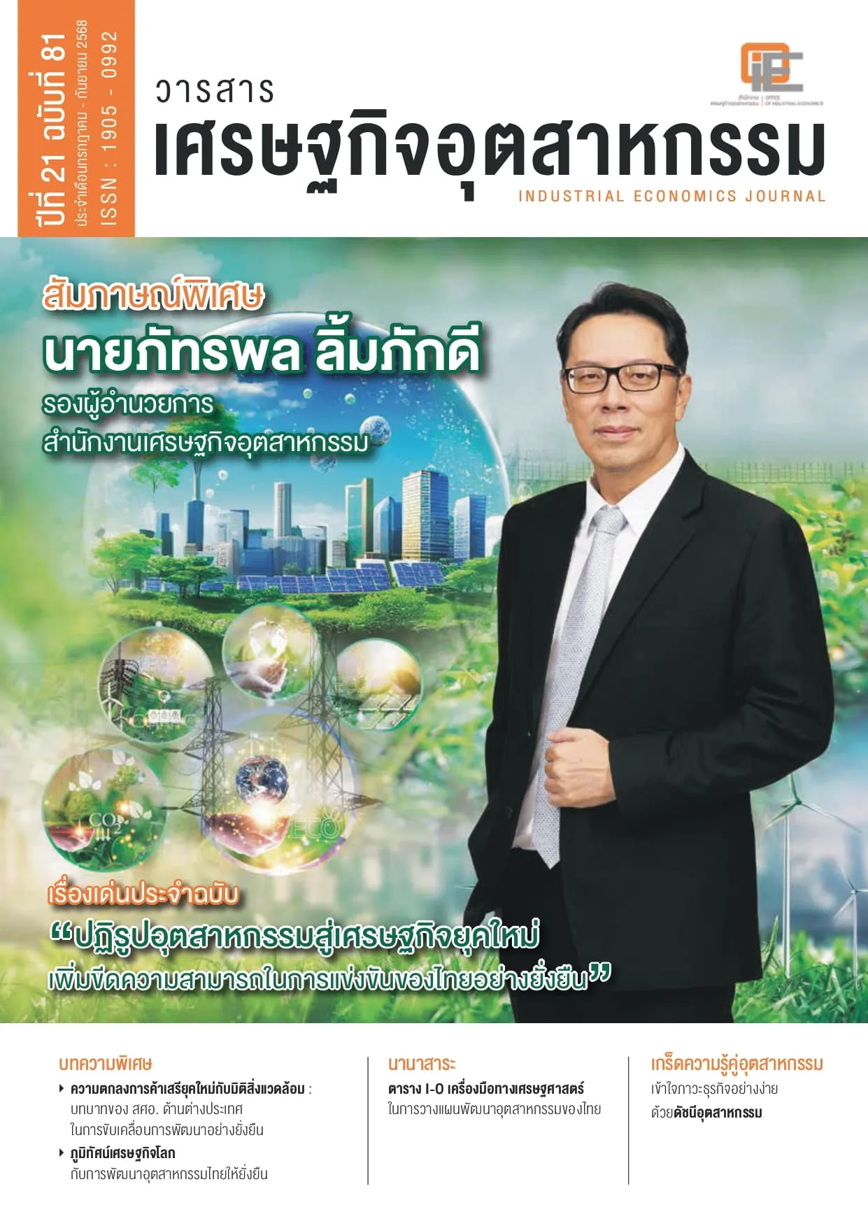 สำนักงานเศรษฐกิจอุตสาหกรรม (สศอ.) กระทรวงอุตสาหกรรม ได้จัดทำ “วารสารเศรษฐกิจอุตสาหกรรม” ปีที่ 21 ฉบับที่ 81 ประจำเดือนกรกฎาคม – กันยายน 2568 ขึ้นมาเพื่อเผยแพร่ประชาสัมพันธ์บทบาทหน้าที่ การดำเนินงาน กิจกรรม รายงานการศึกษา/วิจัย ข้อมูลข่าวสาร การชี้นำเตือนภัยอุตสาหกรรม ตลอดจนบทความ บทวิเคราะห์ บทสัมภาษณ์ และสาระน่ารู้ด้านเศรษฐกิจอุตสาหกรรม ทั้งนี้ ผู้ที่สนใจวารสารดังกล่าว สามารถอ่านและดาวน์โหลดได้ที่เว็บไซต์ www.oie.go.th/assets/portals/1/fileups/2/files/journal/JournalNo81_Jul-Sep2025.pdf