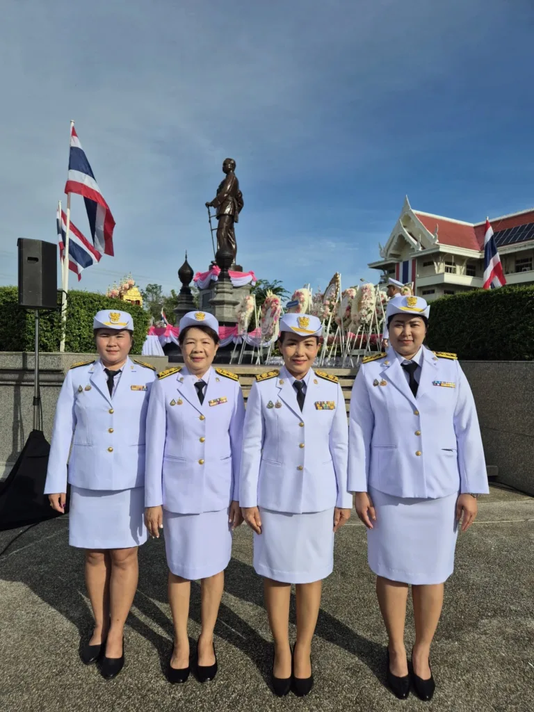 นายสุเทพ ธีรัชสกุล ผู้อำนวยการสำนักงานเขตพื้นที่การศึกษาประถมศึกษาระยอง เขต 1 มอบหมายให้ นางพนาพร ภูจอมจิตร รองผู้อำนวยการสำนักงานเขตพื้นที่การศึกษาประถมศึกษาระยอง เขต 1 พร้อมด้วย นางวรณัฏฐ์ จิตต์ละออง ผู้อำนวยการกลุ่มอำนวยการ บุคลากรกลุ่มอำนวยการ และกลุ่มนโยบายและแผน เข้าร่วมพิธีวางพวงมาลาเบื้องหน้าพระบรมรูปจำลอง พระบาทสมเด็จพระจุลจอมเกล้าเจ้าอยู่หัว รัชกาลที่ 5 เนื่องในวันคล้ายวันสวรรคต “วันปิยมหาราช” ประจำปี 2568 ณ บริเวณหน้าอาคารศาลากลางจังหวัดระยอง ศูนย์ราชการจังหวัดระยอง ตำบลเนินพระ อำเภอเมืองระยอง จังหวัดระยอง