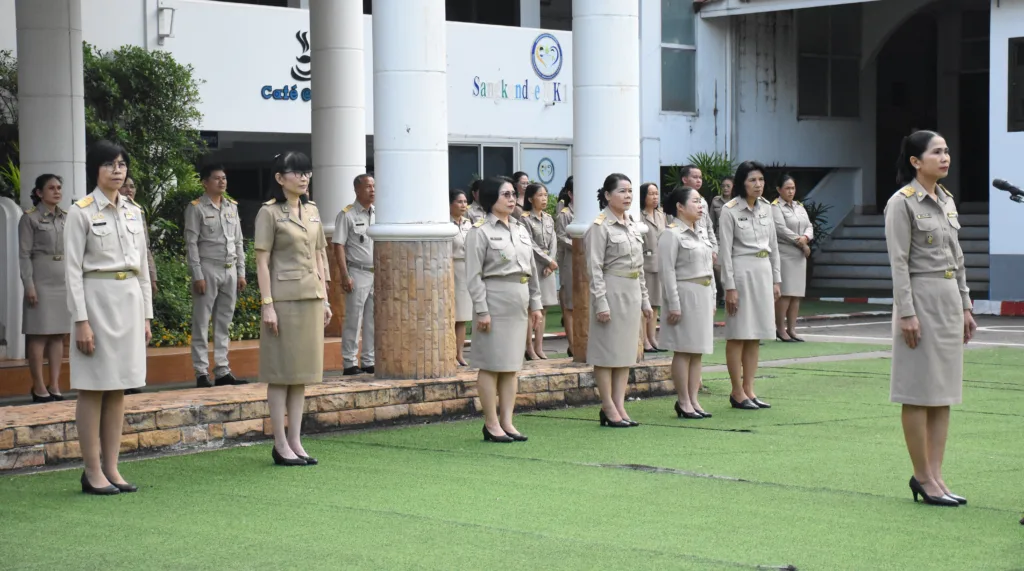 วันจันทร์ที่ 27 ตุลาคม พ.ศ.2568 เวลา 08.30 น. นางสาวรุ่งนภา ธิศรี ผู้อำนวยการสำนักงานเขตพื้นที่การศึกษาประถมศึกษาหนองคาย เขต 1 นำรองผู้อำนวยการสำนักงานเขตพื้นที่การศึกษาประถมศึกษาหนองคาย เขต 1 และบุคคลากรในสังกัด ดำเนินกิจกรรมเคารพธงชาติ สวดมนต์ไหว้พระ กล่าวคำปฏิญญาเขตสุจริต ร่วมร้องเพลง “จำขึ้นใจ” บทเพลงแห่งการเป็นข้าราชการที่ดีของแผ่นดิน เพื่อการขับเคลื่อนโครงการเสริมสร้างคุณธรรม จริยธรรมและธรรมาภิบาลในเขตพื้นที่การศึกษา ปลูกฝังความรักชาติ ศาสน์ กษัตริย์ แจ้งข้อราชการและแนวปฏิบัติในการปฏิบัติราชการจากสำนักงานคณะกรรมการการศึกษาขั้นพื้นฐาน ณ บริเวณด้านหน้าอาคารสำนักงานเขตพื้นที่การศึกษาประถมศึกษาหนองคาย เขต 1