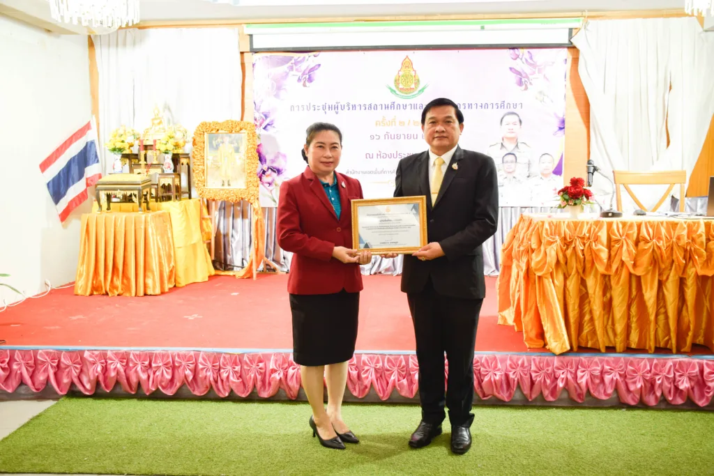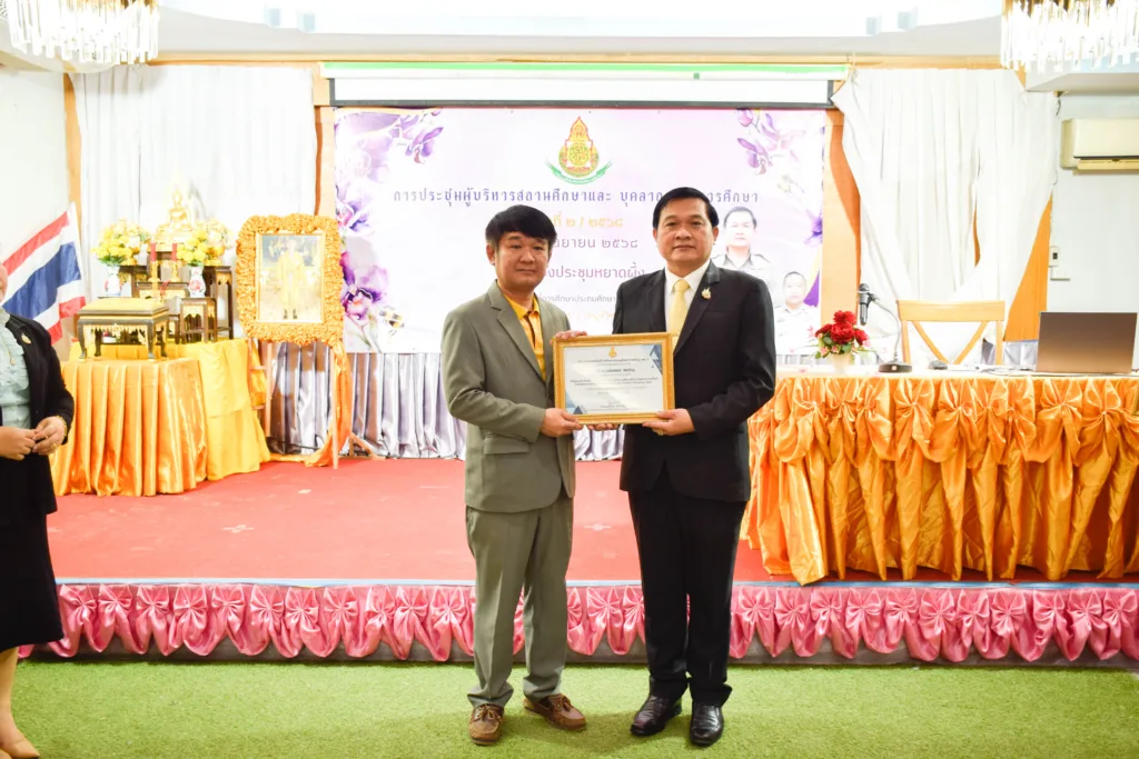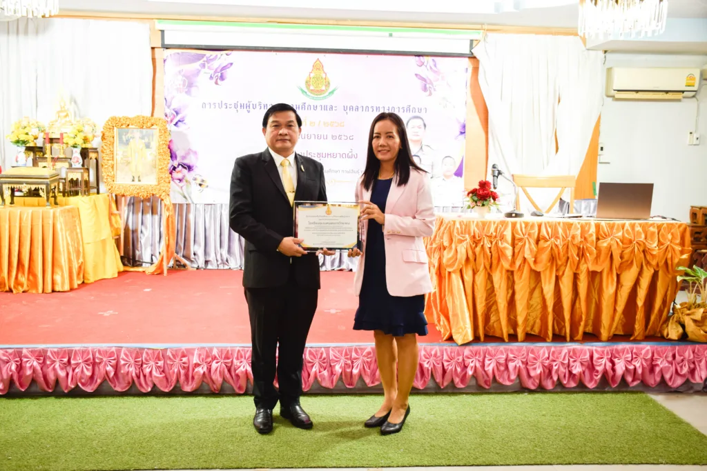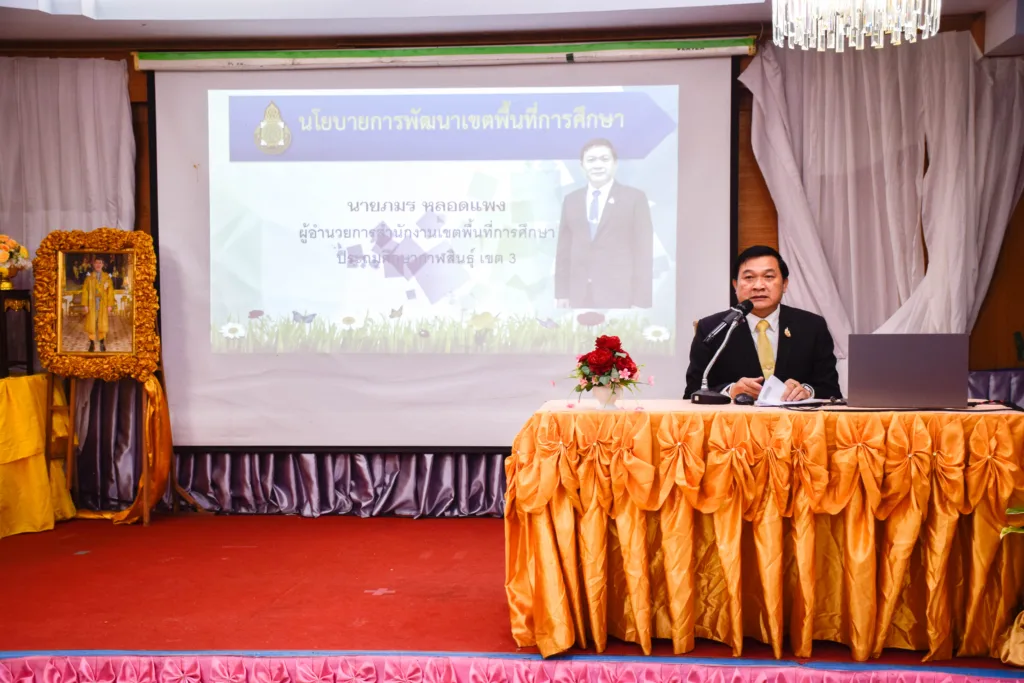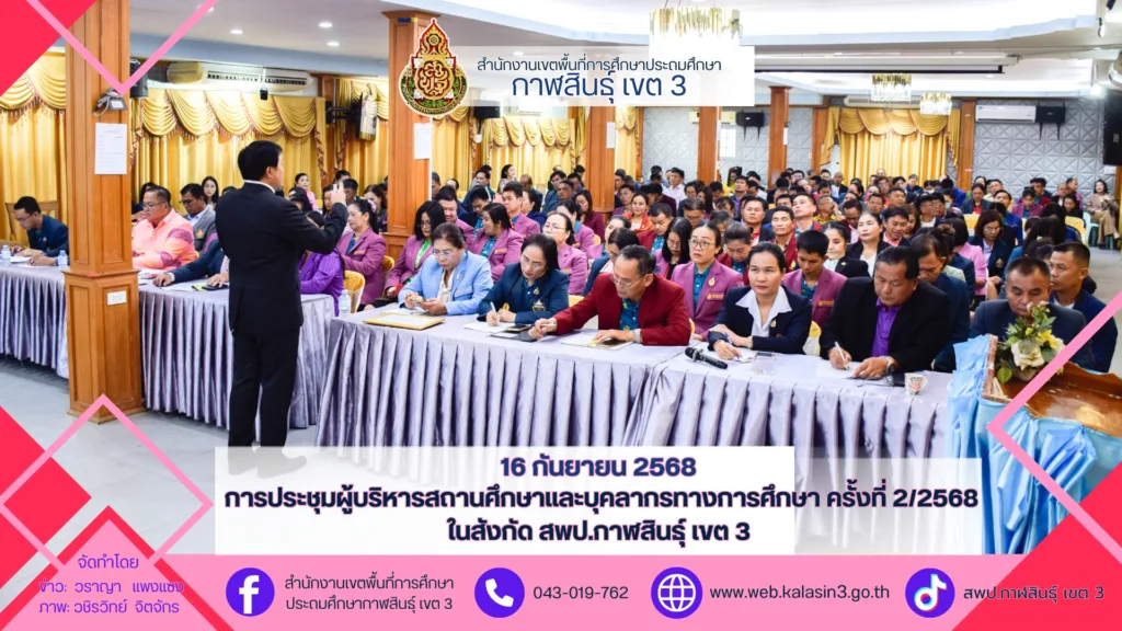 วันอังคารที่ 16 กันยายน 2568 เวลา 09.00 น. นายภมร หลอดแพง ผอ. สพป.กาฬสินธุ์ เขต 3 เป็นประธานในการประชุมผู้บริหารสถานศึกษาและบุคลากรทางการศึกษา ครั้งที่ 2/2568 พร้อมด้วย นายชัยณรงค์ ฤทธิ์วงค์ นายมนตรี จันทวงศ์ รอง ผอ. สพป.กาฬสินธุ์ เขต 3 ผอ.กลุ่ม/หน่วย ผู้บริหารสถานศึกษา ศึกษานิเทศก์ ครู และบุคลากรทางการศึกษาในสังกัด สพป.กาฬสินธุ์ เขต 3 เพื่อแจ้งนโยบายการพัฒนาเขตพื้นที่การศึกษา และมอบรางวัลยกย่องเชิดชูเกียรติแก่ สถานศึกษา ผู้บริหารสถานศึกษา ข้าราชการครู และบุคลากรทางการศึกษาที่มีผลงานดีเด่นเป็นที่ประจักษ์ ประจำปีงบประมาณ พ.ศ. 2567 ณ ห้องประชุมหยาดผึ้ง