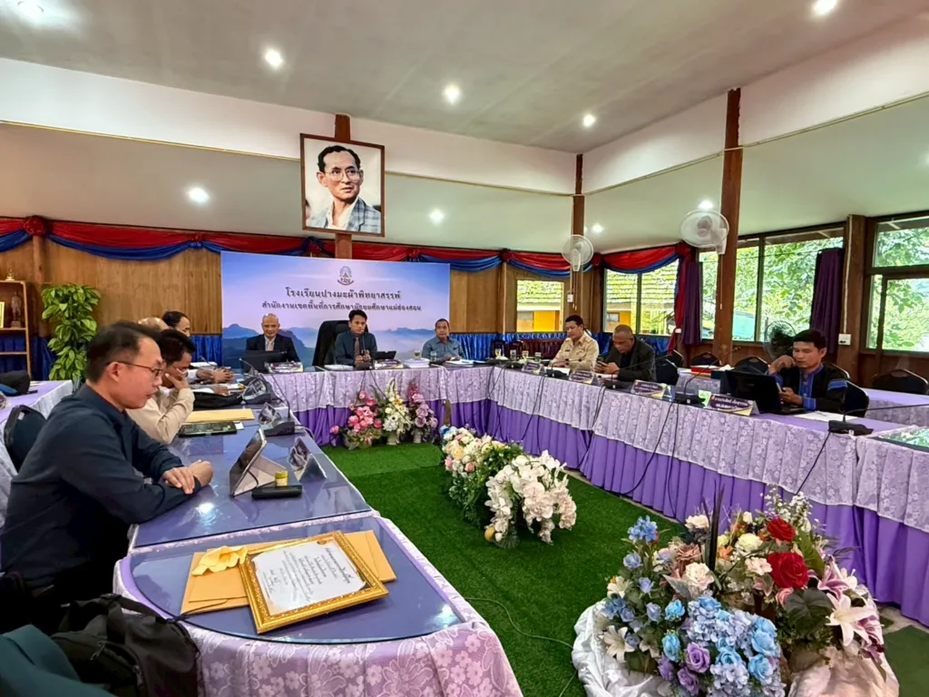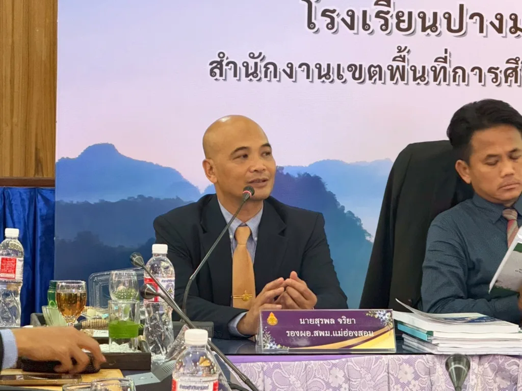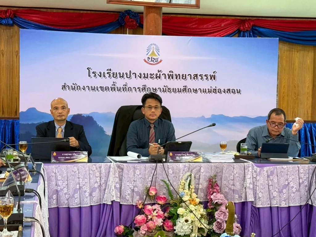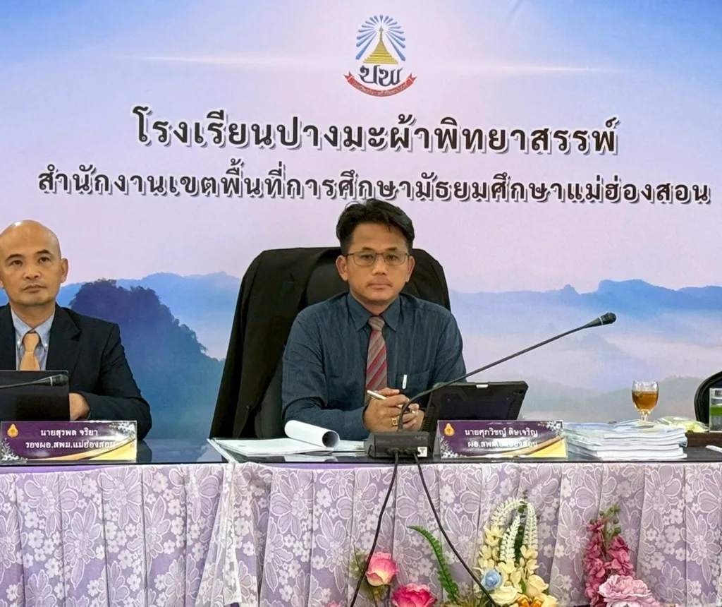 วันที่ 22 กันยายน 2568 เวลา 13.00 น. นายศุภวิชญ์ ดิษเจริญ ผู้อำนวยการสำนักงานเขตพื้นที่การศึกษามัธยมศึกษาแม่ฮ่องสอน พร้อมด้วย นายสุรพล จริยา รองผู้อำนวยการสำนักงานเขตพื้นที่การศึกษามัธยมศึกษาแม่ฮ่องสอน ร่วมเป็นประธานกรรมการในการประเมินข้อตกลงในการพัฒนางาน (Performance Agreement: PA) ของผู้อำนวยการสถานศึกษาในสังกัด ณ ห้องประชุมแม่ละนา โรงเรียนปางมะผ้าพิทยาสรรพ์ อำเภอปางมะผ้า จังหวัดแม่ฮ่องสอน