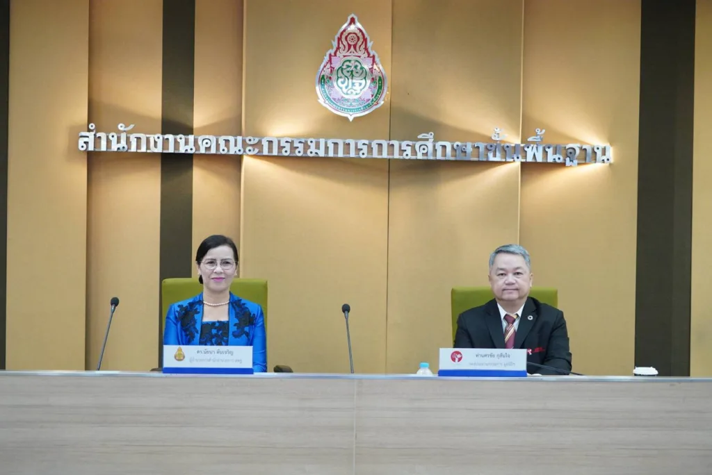 นที่ 25 กันยายน 2568 ว่าที่ร้อยตรี ธนุ วงษ์จินดา เลขาธิการคณะกรรมการการศึกษาขั้นพื้นฐาน (เลขาธิการ กพฐ.) มอบหมายให้ นางนัยนา ตันเจริญ ผู้อำนวยการสำนักอำนวยการ สพฐ. เป็นตัวแทนรับมอบเงินสนับสนุนงบประมาณก่อสร้างอาคารโรงอาหาร “อายิโนะโมะโต๊ะ” ปีที่ 5 ประจำปีการศึกษา 2568 ให้แก่โรงเรียนที่ขาดแคลน จำนวน 10 โรงเรียน รวมมูลค่า 22 ล้านบาท ภายใต้โครงการ “อายิโนะโมะโต๊ะ โภชนาการเพื่อเด็กไทย ก้าวไกลสร้างชาติ” ระยะที่ 3 พร้อมด้วย มูลนิธิอายิโนะโมะโต๊ะ นำโดย นายศรชัย กุสันใจ รองประธานกรรมการมูลนิธิฯ พร้อมด้วยคณะกรรมการมูลนิธิฯ ผู้บริหารระดับสูงจาก สพฐ. ผู้บริหารเขตพื้นที่การศึกษา ผู้อำนวยการโรงเรียน และครูผู้รับผิดชอบโครงการจากทั้ง 10 โรงเรียน ที่ได้รับการสนับสนุน เข้าร่วมเป็นสักขีพยานในพิธี ณ ห้องประชุม สพฐ. 1 อาคาร สพฐ. 4 ชั้น 2 กระทรวงศึกษาธิการ กรุงเทพมหานคร