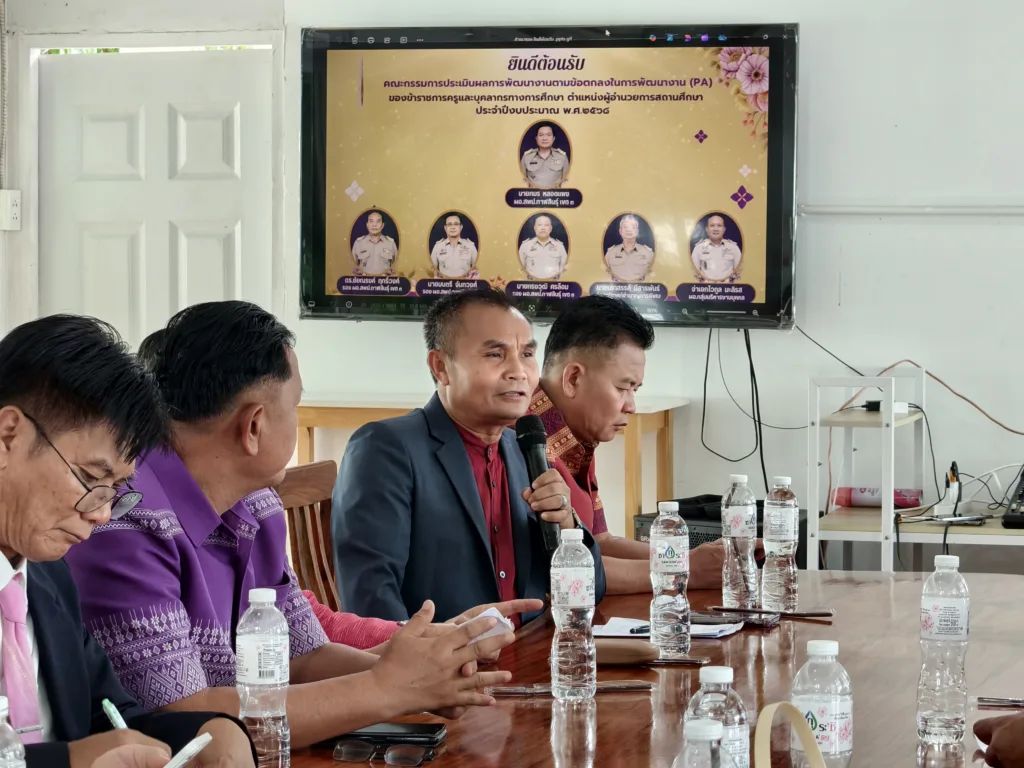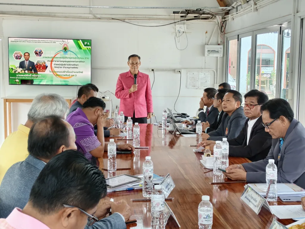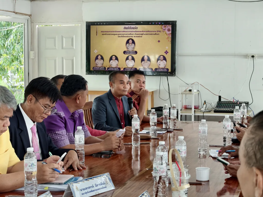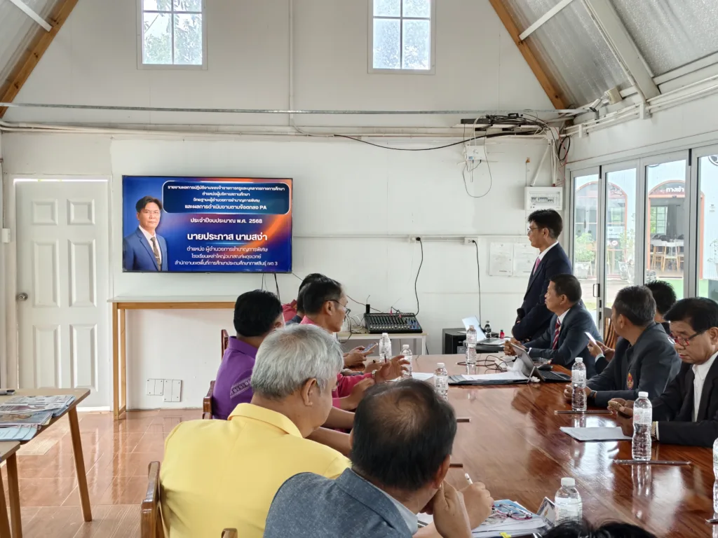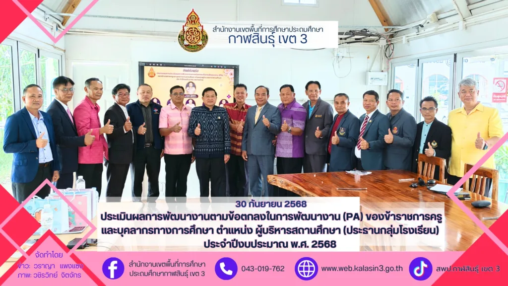 วันอังคารที่ 30 กันยายน 2568 เวลา 10.00 น. นายภมร หลอดแพง ผอ. สพป.กาฬสินธุ์ เขต 3 พร้อมด้วย ดร.ชัยณรงค์ ฤทธิ์วงค์ นายมนตรี จันทวงศ์ นายทรงวุฒิ ศรล้อม รอง ผอ. สพป.กาฬสินธุ์ เขต 3 นายเสกสรรค์ มีสารพันธ์ ผอ.กลุ่มนิเทศ ติดตามและประเมินผลการจัดการศึกษา จ.อ.ไวกูล มะลิรส ผอ.กลุ่มบริหารงานบุคคล คณะกรรมการ ตามคำสั่งปฏิบัติหน้าที่ประเมินผลการพัฒนางานตามข้อตกลงในการพัฒนางาน (PA) ของข้าราชการครูและบุคลากรทางการศึกษา ตำแหน่ง ผู้บริหารสถานศึกษา (ประธานกลุ่มโรงเรียน) ประจำปีงบประมาณ พ.ศ. 2568 ตามกรอบการประเมิน การดำเนินการเป็นไปด้วยความเรียบร้อย โดยมี ผู้บริหารสถานศึกษา (ประธานกลุ่มโรงเรียน) ทั้ง 10 กลุ่มโรงเรียน นำเสนอผลการพัฒนางาน ตามกรอบการประเมินอย่างเข้ม ณ หลังสวนคาเฟ่ by สวนก้องจิราภาส อ.กุฉินารายณ์ จ.กาฬสินธุ์