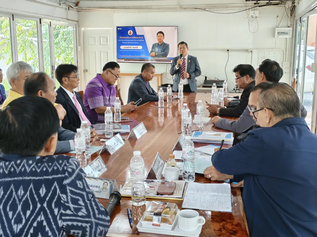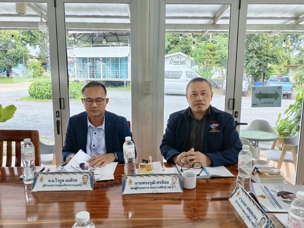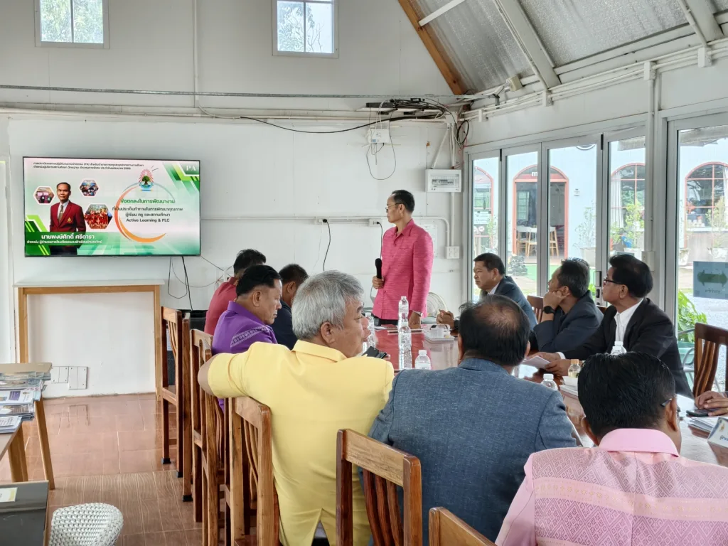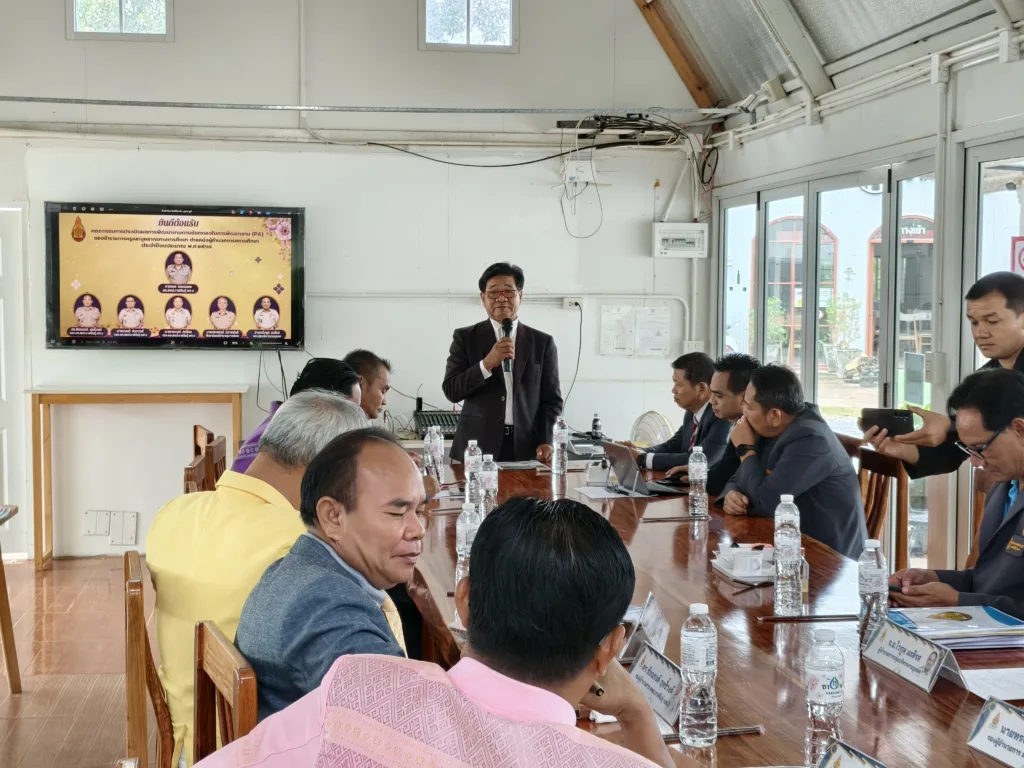 วันอังคารที่ 30 กันยายน 2568 เวลา 10.00 น. นายภมร หลอดแพง ผอ. สพป.กาฬสินธุ์ เขต 3 พร้อมด้วย ดร.ชัยณรงค์ ฤทธิ์วงค์ นายมนตรี จันทวงศ์ นายทรงวุฒิ ศรล้อม รอง ผอ. สพป.กาฬสินธุ์ เขต 3 นายเสกสรรค์ มีสารพันธ์ ผอ.กลุ่มนิเทศ ติดตามและประเมินผลการจัดการศึกษา จ.อ.ไวกูล มะลิรส ผอ.กลุ่มบริหารงานบุคคล คณะกรรมการ ตามคำสั่งปฏิบัติหน้าที่ประเมินผลการพัฒนางานตามข้อตกลงในการพัฒนางาน (PA) ของข้าราชการครูและบุคลากรทางการศึกษา ตำแหน่ง ผู้บริหารสถานศึกษา (ประธานกลุ่มโรงเรียน) ประจำปีงบประมาณ พ.ศ. 2568 ตามกรอบการประเมิน การดำเนินการเป็นไปด้วยความเรียบร้อย โดยมี ผู้บริหารสถานศึกษา (ประธานกลุ่มโรงเรียน) ทั้ง 10 กลุ่มโรงเรียน นำเสนอผลการพัฒนางาน ตามกรอบการประเมินอย่างเข้ม ณ หลังสวนคาเฟ่ by สวนก้องจิราภาส อ.กุฉินารายณ์ จ.กาฬสินธุ์