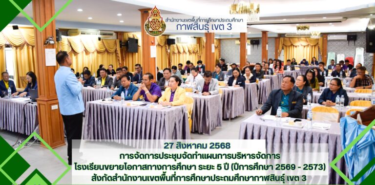 สพป.กาฬสินธุ์ เขต 3 ร่วมเป็นเกียรติในพิธีเปิดการประชุมเชิงปฏิบัติการ การพัฒนาผู้บริหารสถานศึกษา เพื่อเข้าสู่ตำแหน่งทางวิชาการที่สูงขึ้นในระดับวิทยฐานะเชี่ยวชาญตามเกณฑ์ ว PA26 สิงหาคม 256827 สิงหาคม 2025วราญา แพงแซง26 สิงหาคม 256827 สิงหาคม 2025Read more