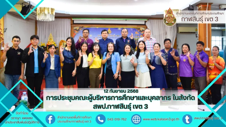 การประชุมคณะผู้บริหารการศึกษาและบุคลากร ในสังกัด สพป.กาฬสินธุ์ เขต 312 กันยายน 256815 กันยายน 2025วราญา แพงแซง12 กันยายน 256815 กันยายน 2025Read more