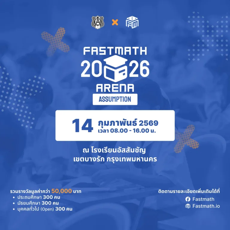 การแข่งขันเกมคิดเลขเร็ว “Fastmath Arena Assumption 2026”30 ตุลาคม 256830 ตุลาคม 2025สุรพงษ์ ศรีแก้ว30 ตุลาคม 256830 ตุลาคม 2025Read more