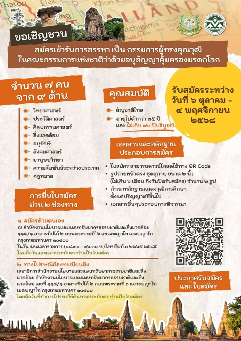 รับสมัครเข้ารับการสรรหาเป็นกรรมการผู้ทรงคุณวุฒิในคณะกรรมการแห่งชาติว่าด้วยอนุสัญญาคุ้มครองมรดกโลก31 ตุลาคม 256831 ตุลาคม 2025สุรพงษ์ ศรีแก้ว31 ตุลาคม 256831 ตุลาคม 2025Read more