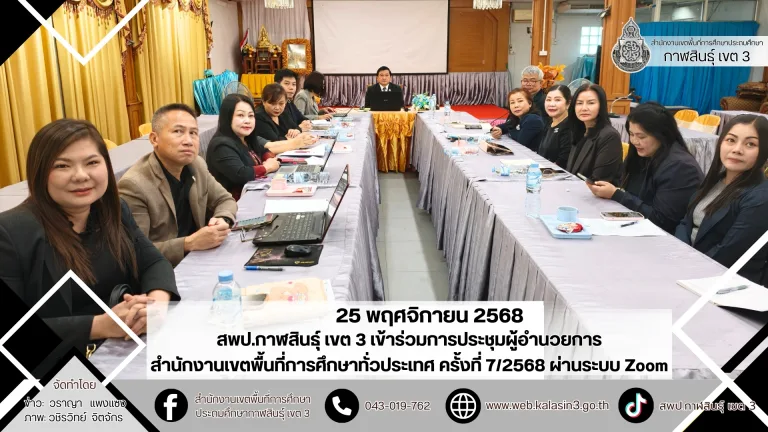 สพป.กาฬสินธุ์ เขต 3 เข้าร่วมการประชุมผู้อำนวยการสำนักงานเขตพื้นที่การศึกษาทั่วประเทศ ครั้งที่ 7/2568 ผ่านระบบ Zoom26 พฤศจิกายน 256826 พฤศจิกายน 2025วราญา แพงแซง26 พฤศจิกายน 256826 พฤศจิกายน 2025Read more